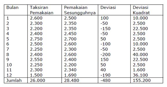 2. Metode Statistika. Untuk menentukan besarnya safety stock dengan metode ini, maka dapat digunakan program komputer kuadrat terkecil (least square). Untuk menggambarkan penggunaan metode ini, maka diberi contoh berikut ini, yaitu untuk menaksir safety stock tahun 2001 didasarkan pada data tahun 2000.
