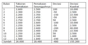 1. Menghitung Rata-rata Deviasi = – 480 : 12 = 1 40