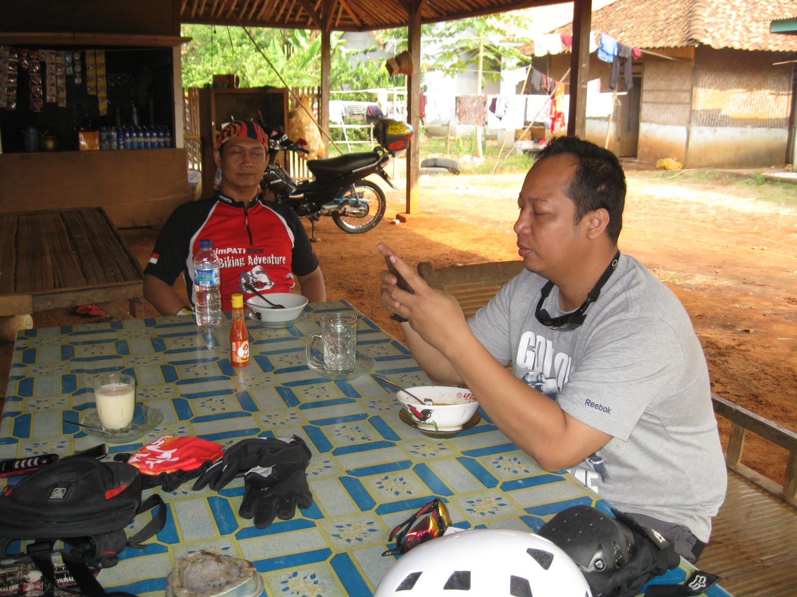 Oh iya, berdasarkan informasi dari Mas Eka, pamannya juga menyusul untuk ikutan ke CAT ini hanya saja pamannya memutuskan untuk mengayuh sepedanya menuju pangkalan (goweser sejati), alhasil kami harus menunggu sekitar satu jam.